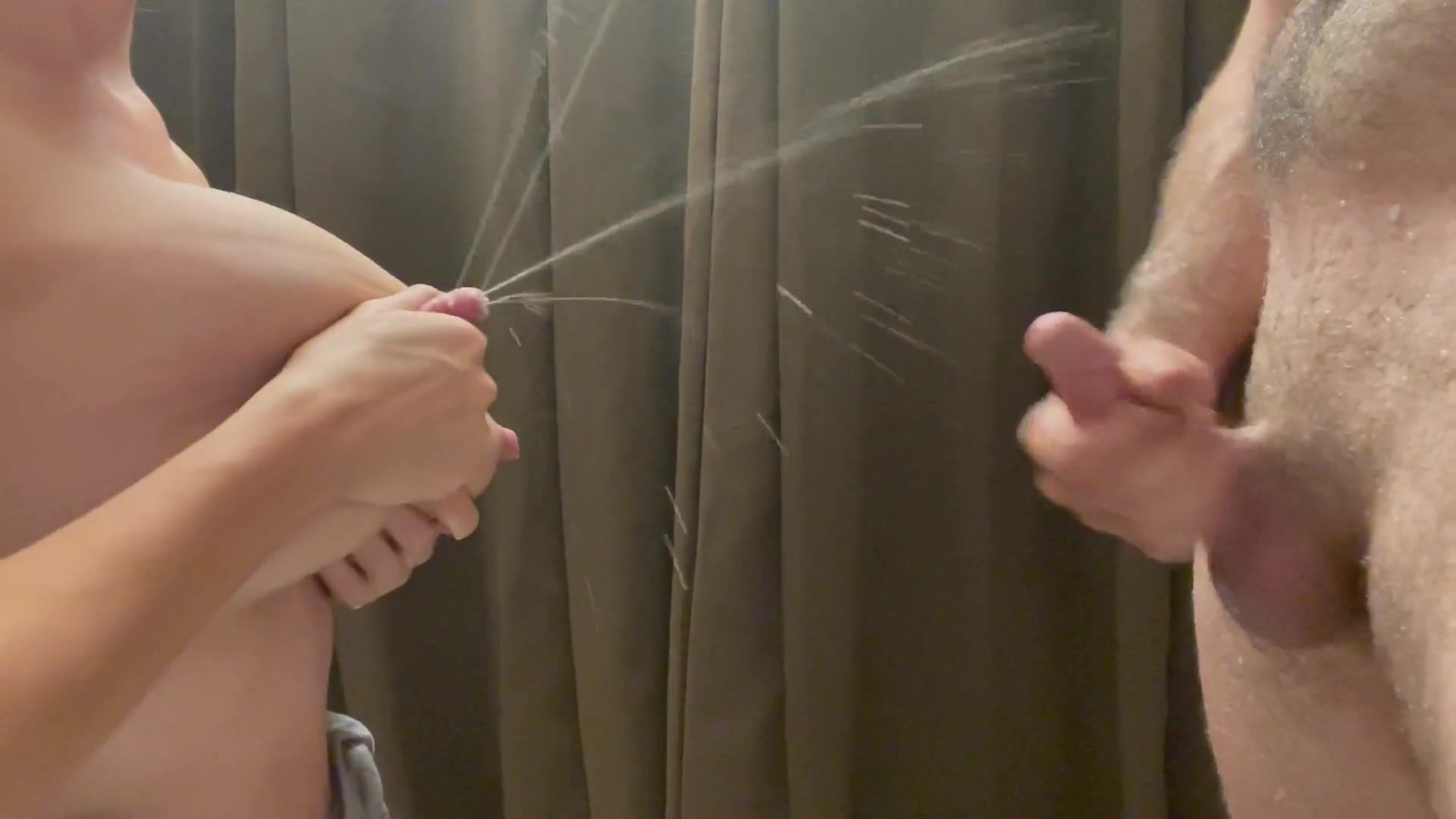 Sprays milk while husband beats off